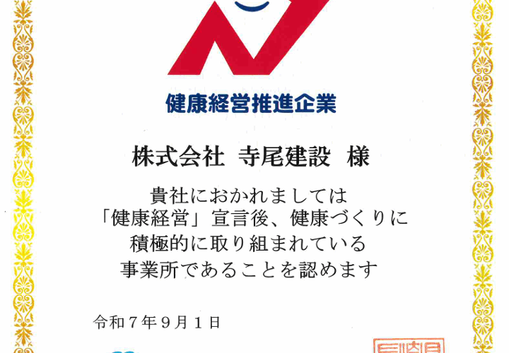 健康経営推進企業認定事業において、弊社の従業員の健康に対する取り組みが認められました。