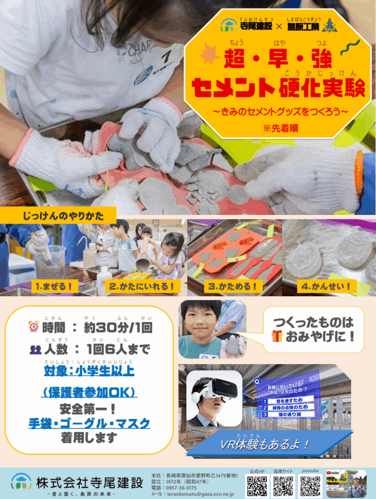 ブース内容:【超・早・強 セメント硬化実験~きみのセメントグッズをつくろう~】