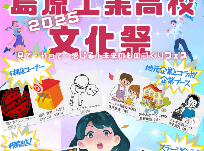 令和7年11月8日土曜日に島原工業高校にて開催される文化祭に弊社企業ブースを出展します。